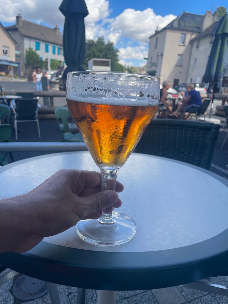 I’m spending tonight in the wonderful town of Aumont-Aubrac. My favorite , so far. This is the church in the center of town.