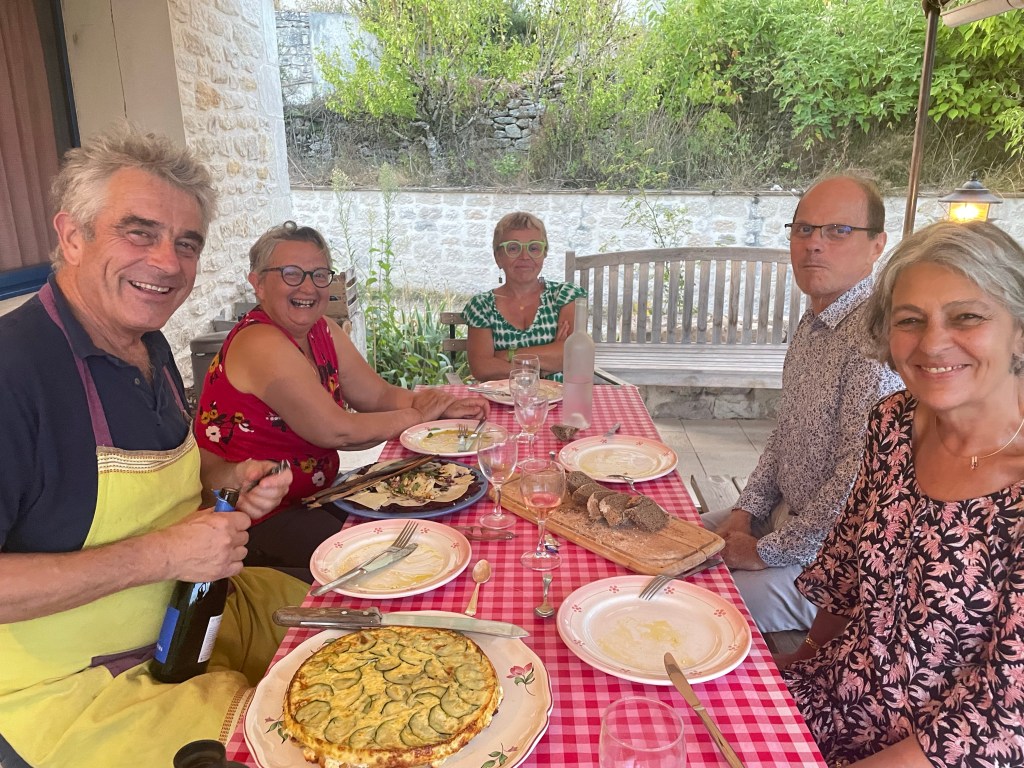 When I arrived at last night’s gite I was disappointed. I got 4-5 mosquito bites in my room, and I was so far from town I was stuck there. But everything turned around at dinner. Hans, the owner, cooked a great meal, and several of the other guests spoke English. Dinner lasted over 2 hours but flew by. The mosquitoes also disappeared. Fed them enough of my blood, I guess. Great pilgrim experience!