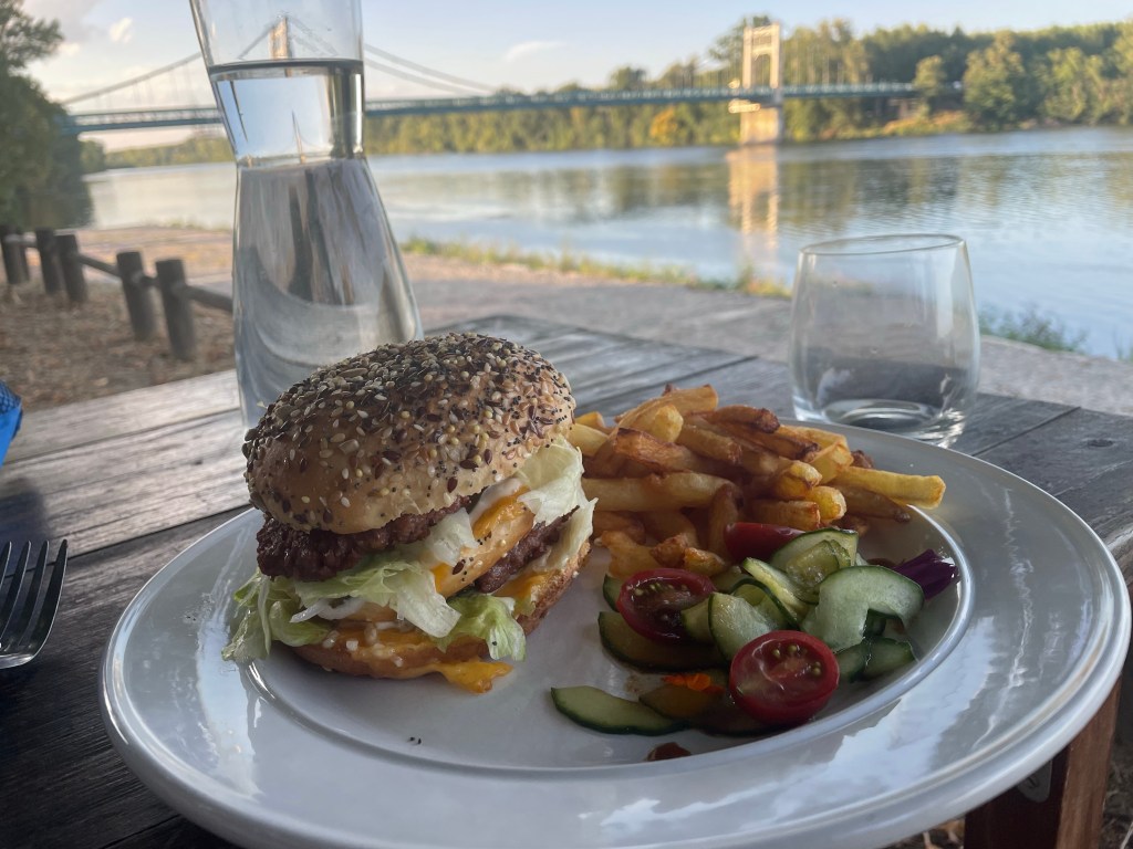 The only restaurant open in Auvillar last night was a burger place. So I got a burger and fries and sat in the park.