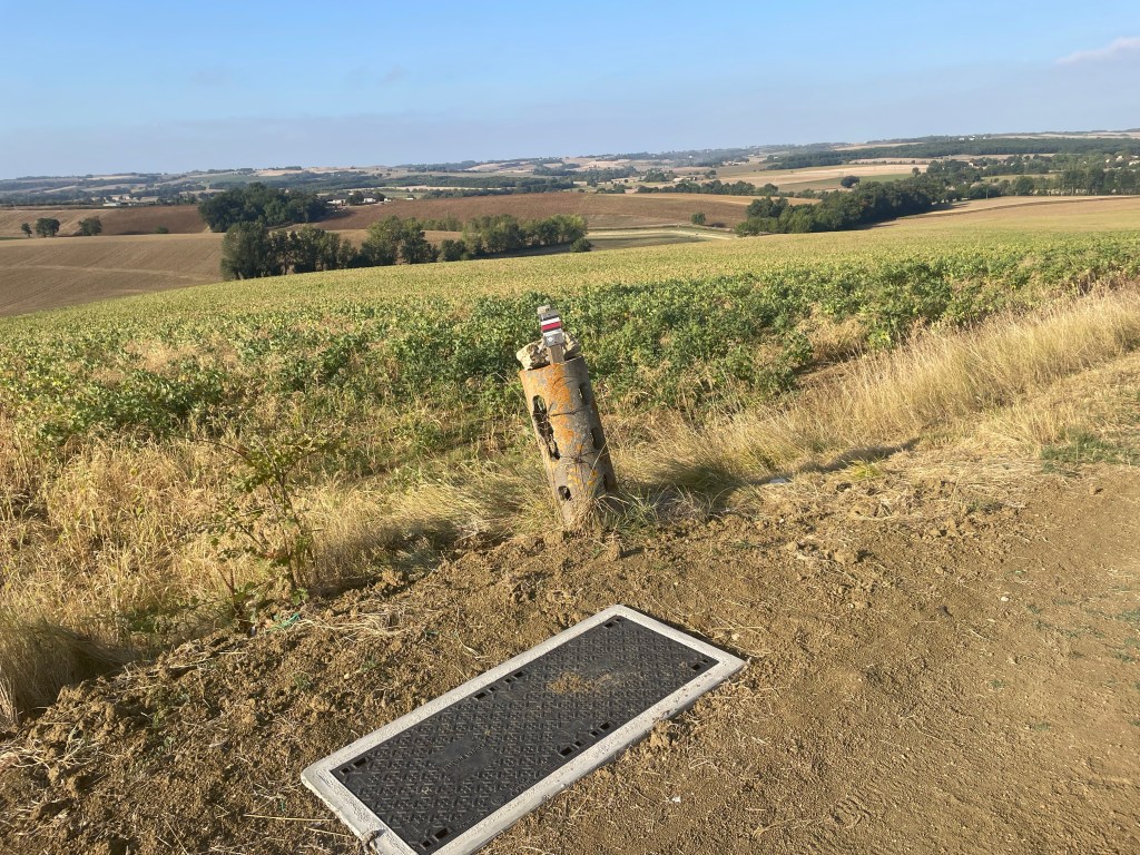 The terrain in this part of France doesn’t change much. Rolling hills and farms punctuated with some forests. The Pyrenees mountains are out there somewhere though. About 10 days away.