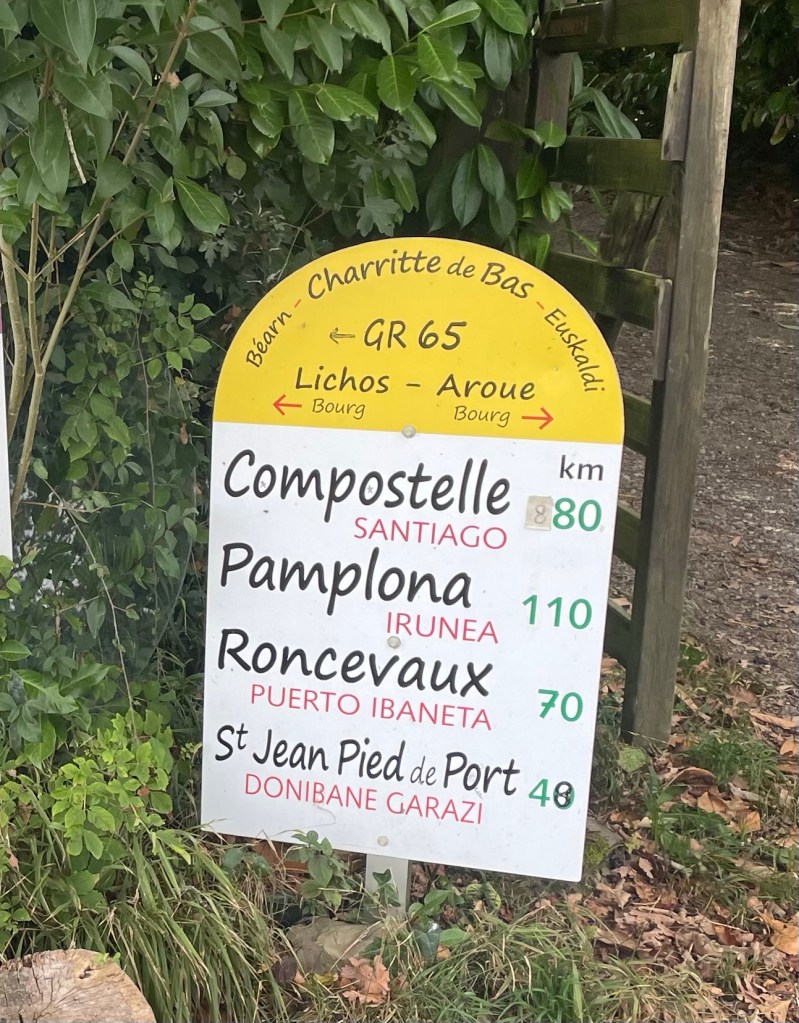 Finished in the small town of Aroue which has very few lodging and food options, so like many pilgrims, I got a ride to the much larger Saint-Palais down the road. It’s a lovely village and I have a nice hotel room right on the town square.