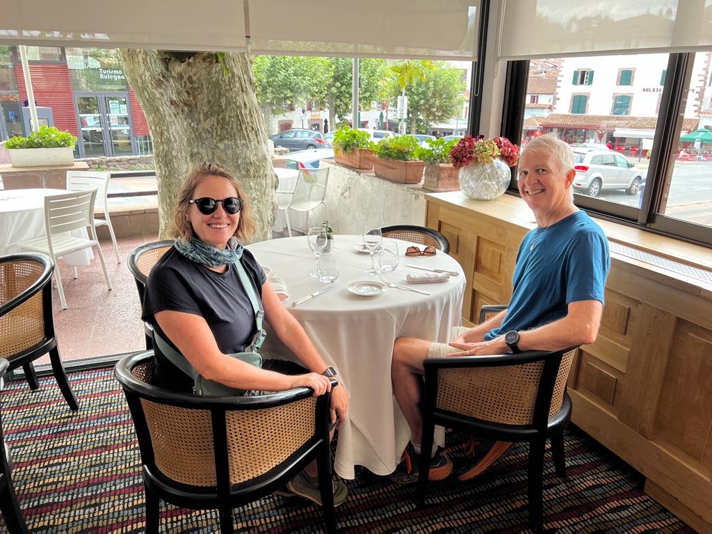 Tracy from SF and I agreed a couple of days ago to meet up at the Michelin star restaurant in SJPDP to celebrate getting to the halfway point. She’s going to take a 3 day break at San Sebastien before she continues to Santiago. So,this will be the last time we see each other. I’m thankful for her company. It’s been really nice to have an American to eat with every few days. BTW… meal was fantastic.