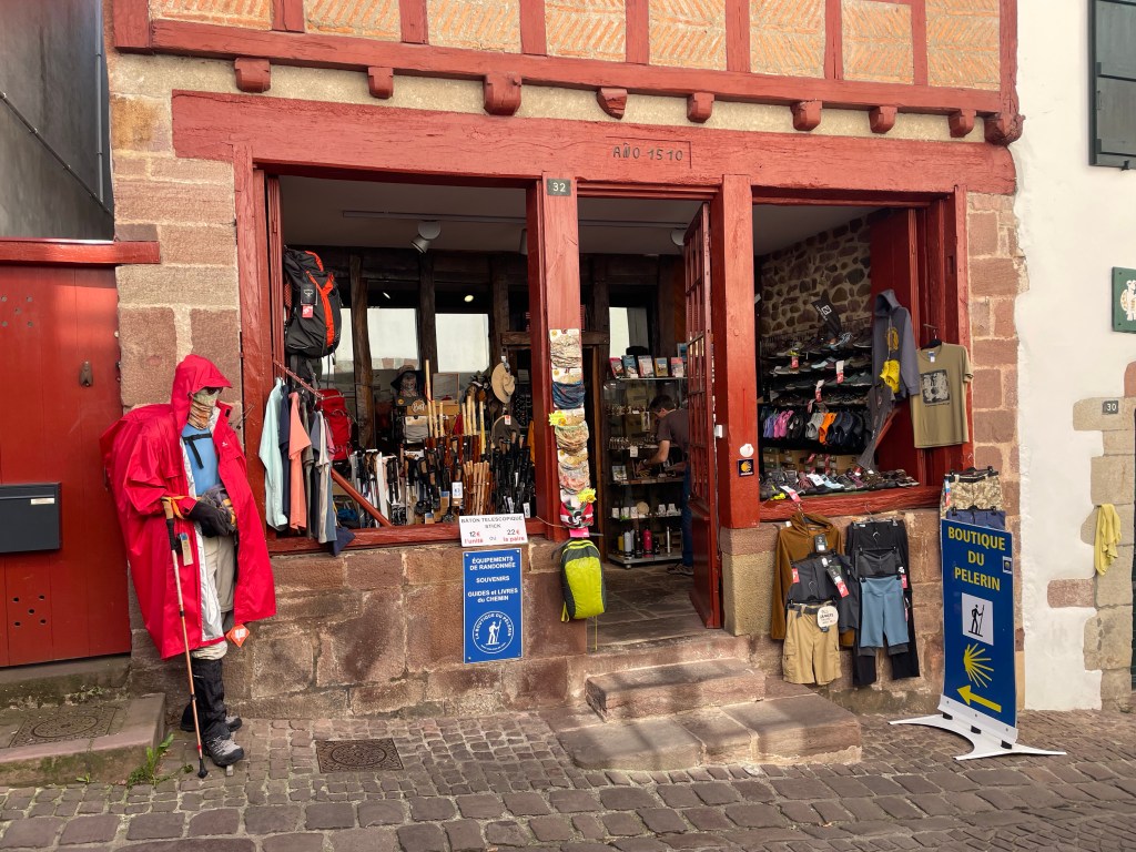 Elevation map from my guide book for tomorrow’s stage. Total climb is 1565 meters (5134 feet). Just a little bump in the road.When I got to France a month ago, I shipped myself a box with a new pair of shoes, new socks, guidebooks for Spain and some treats. The box was waiting for me at my hotel here in SJPDP. Fresh socks are an especially nice treat.This bridge marks the beginning of the “Camino Frances.” It’s hard to imagine the millions of pilgrims that have crossed it over the years.This is line at the Pilgrims’ Office. Most pilgrims stop here to get their credential, book lodging and get their first credential stamp. You hear many languages in this line. Inside of the Pilgrims’ Office. The Pilgrims’ Store. They do a killing providing last minute gear for pilgrims. I had to buy gloves and a fleece here. Mornings are cold now. When I leave tomorrow it will be about 45 degrees.The main pedestrian street in SJPDP. Not sure why the bells are ringing at 12:15pm but I’m not complaining. They sound cool echoing off the cobbles and buildings.Walking along the walls of SJPDP. The walls of the citadel above the town. Views of SJPDP from the citadel.