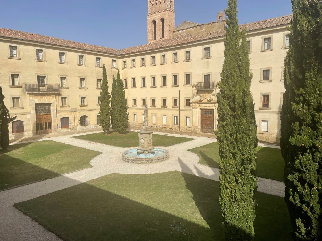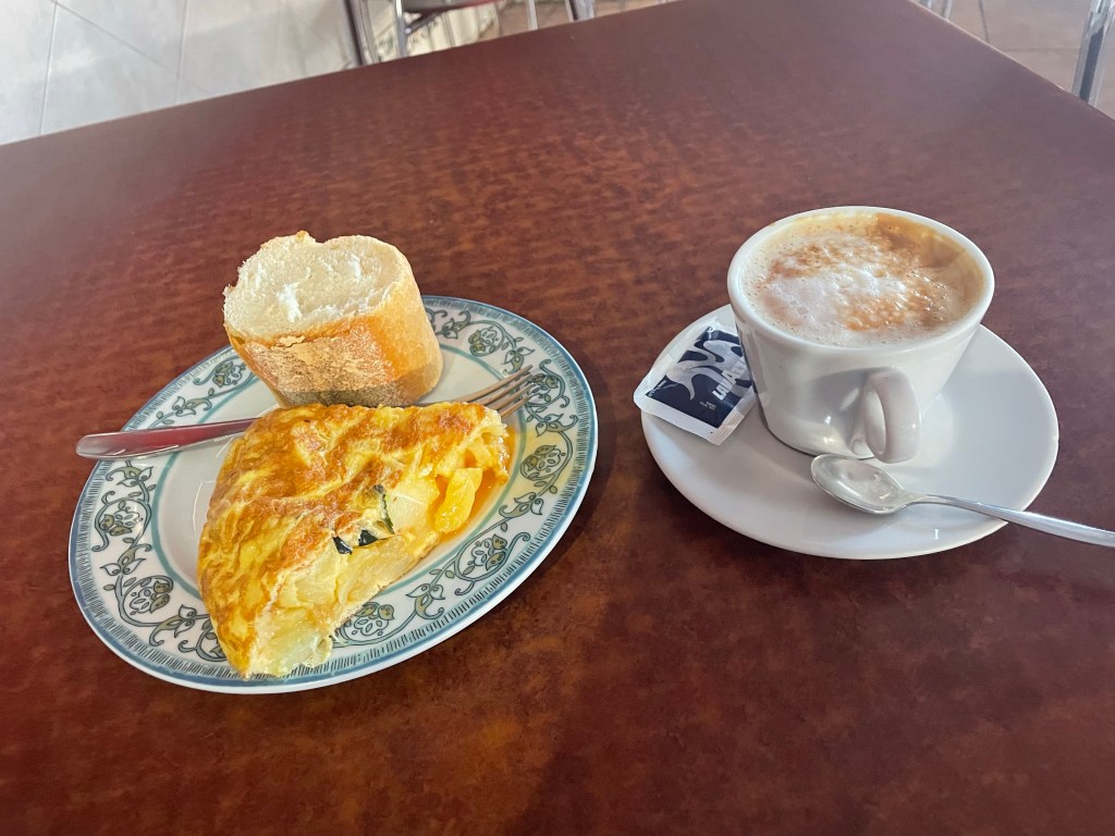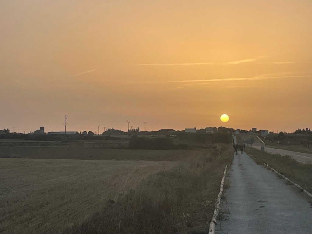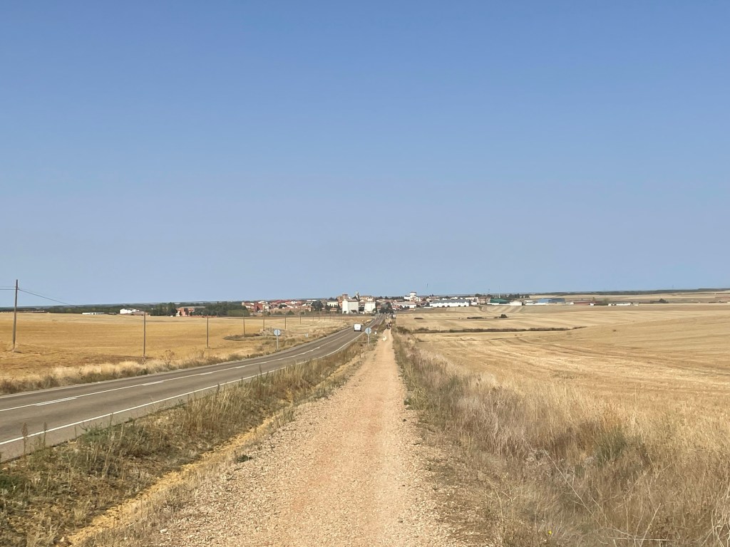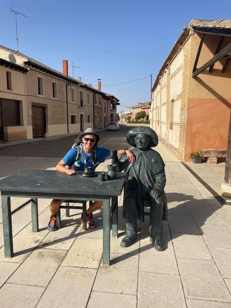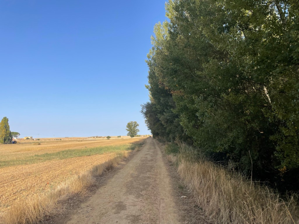 Sunrise leaving Fromista. What’s the most common food on the Camino? Tortilla. It’s a traditional Spanish omelet with potato, cheese and onion. They have it everywhere and sometimes it’s your only option. Today my hotel breakfast was just some bread, so I stopped for a snack along the trail. This was all that was available. It’s not my favorite but it’s hearty. Here’s the trail next to the road. Even with the bypass, I had to walk on this for about 5 miles. The shady route. Like I said not very scenic, but better than a road. Another of my pilgrim friends. Nice guy but he’s a bit stiff. These irrigation systems can be found across the Meseta. I’m not sure how they work. . Staying at a beautiful old monastery tonight. One of the nicest places I’ve stayed so far. I’ve reserved several nice places over the next few weeks. It’s part reward, part motivation. After 7 weeks of walking, it’s easier to walk if a nice room is in your future. View above is from my window.