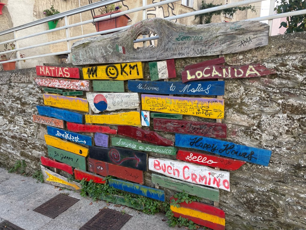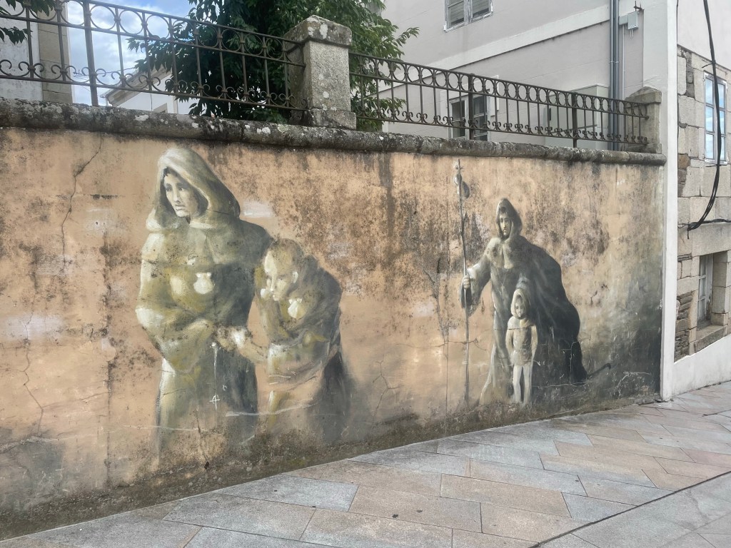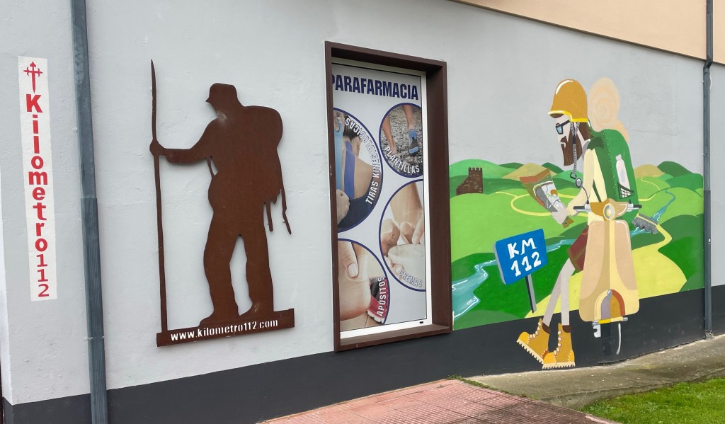 Mural on side of pilgrim store. The store is called “Kilometer 112” since that’s the distance to Santiago.