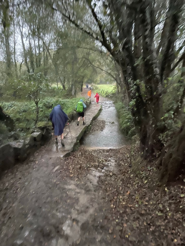 Most of the morning looked like this. Pilgrims in ponchos trudging through the mud. It wasn’t as crowded as I expected, probably due the poor weather.