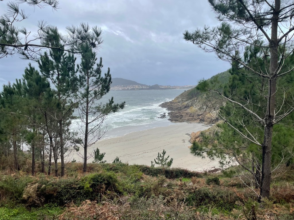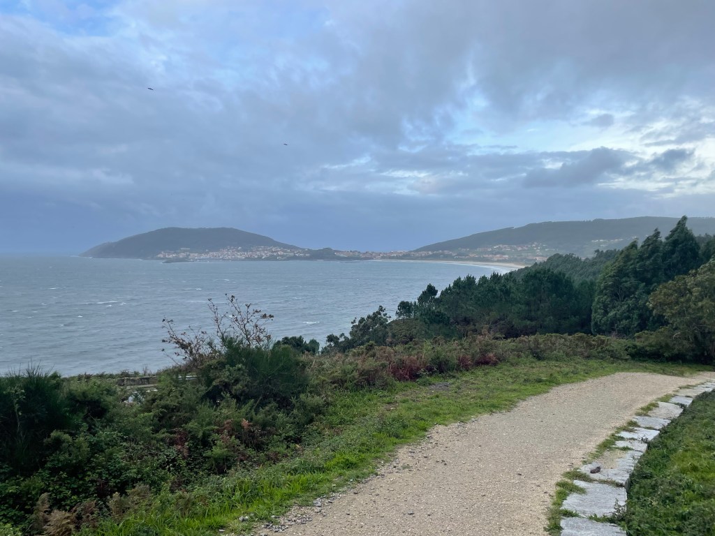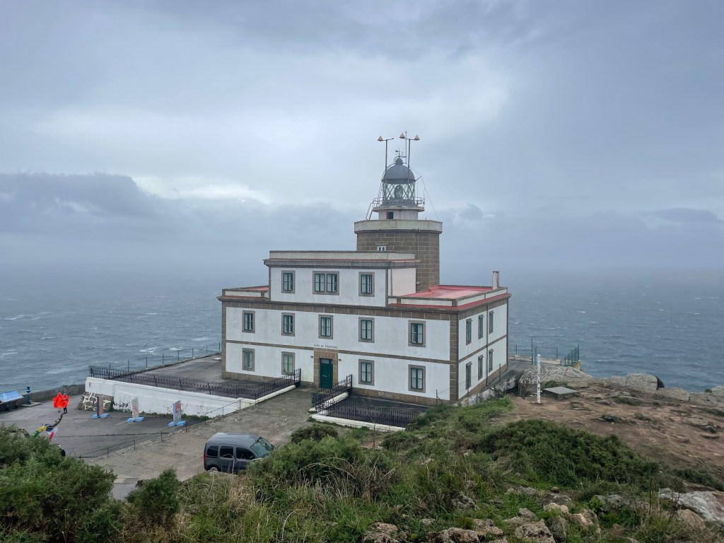 Today, I walked the final 10 kilometers out to Finisterre lighthouse (and back). Lots of great views. Despite threatening skies and gusty winds, there was very little rain.