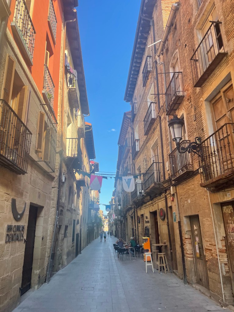 Viana streets during lunchtime. Busy with pilgrims taking a break.