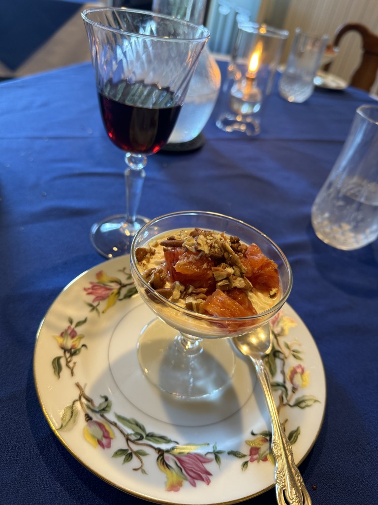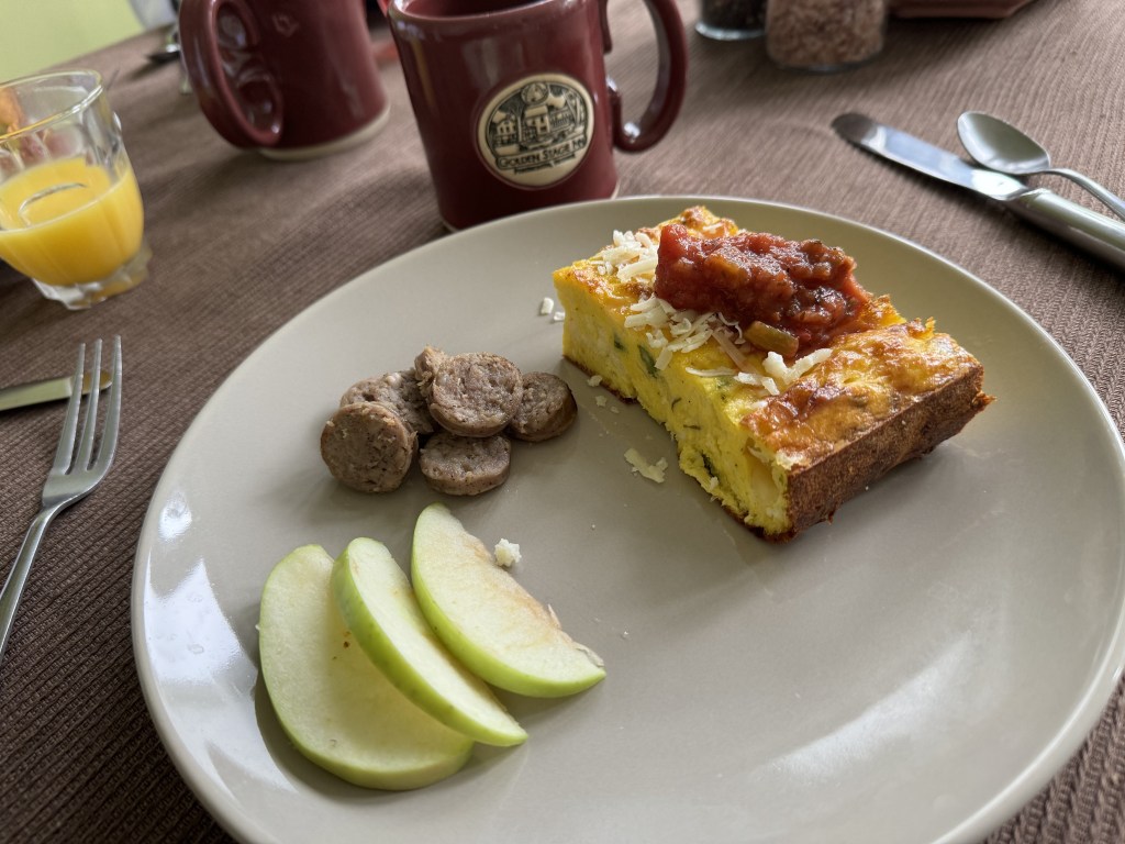 All the meals we’ve had so far have been great. Tonight… cucumber and avocado soup, pork chops with butternut squash couscous, and maple panna cotta for dessert. There’s a lot of maple in this state.