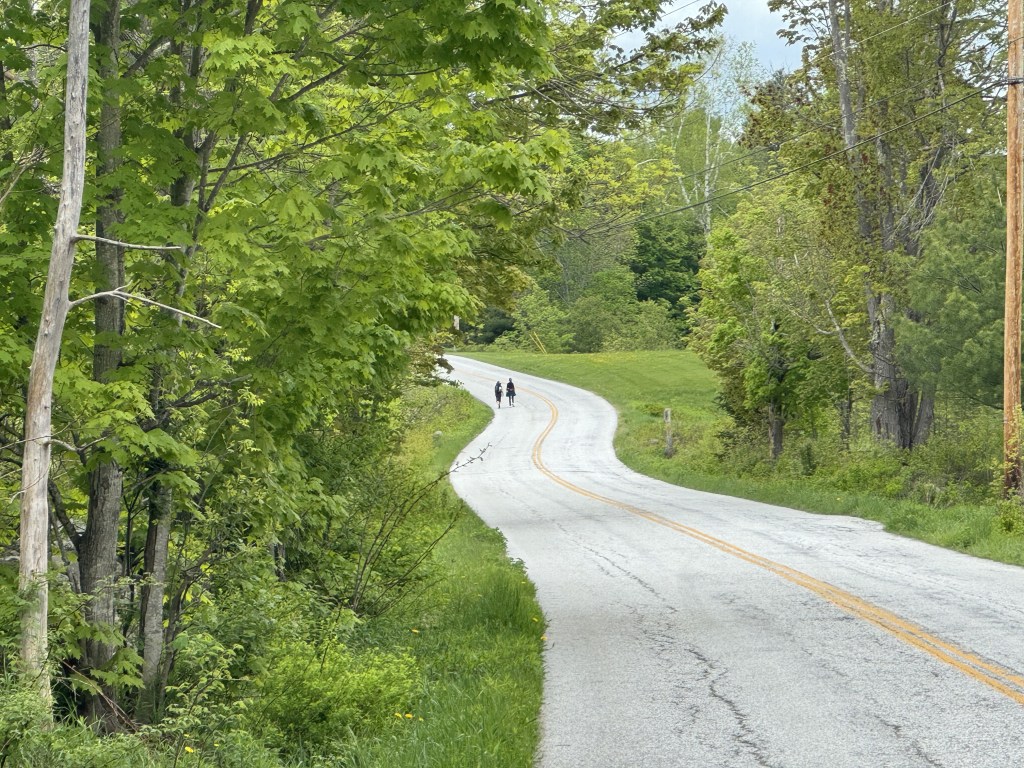 Ellen and Amy walking on a paved portion of the route. This was taken a few minutes after they saw a bear on the road ahead of them. (I didn’t see it.)