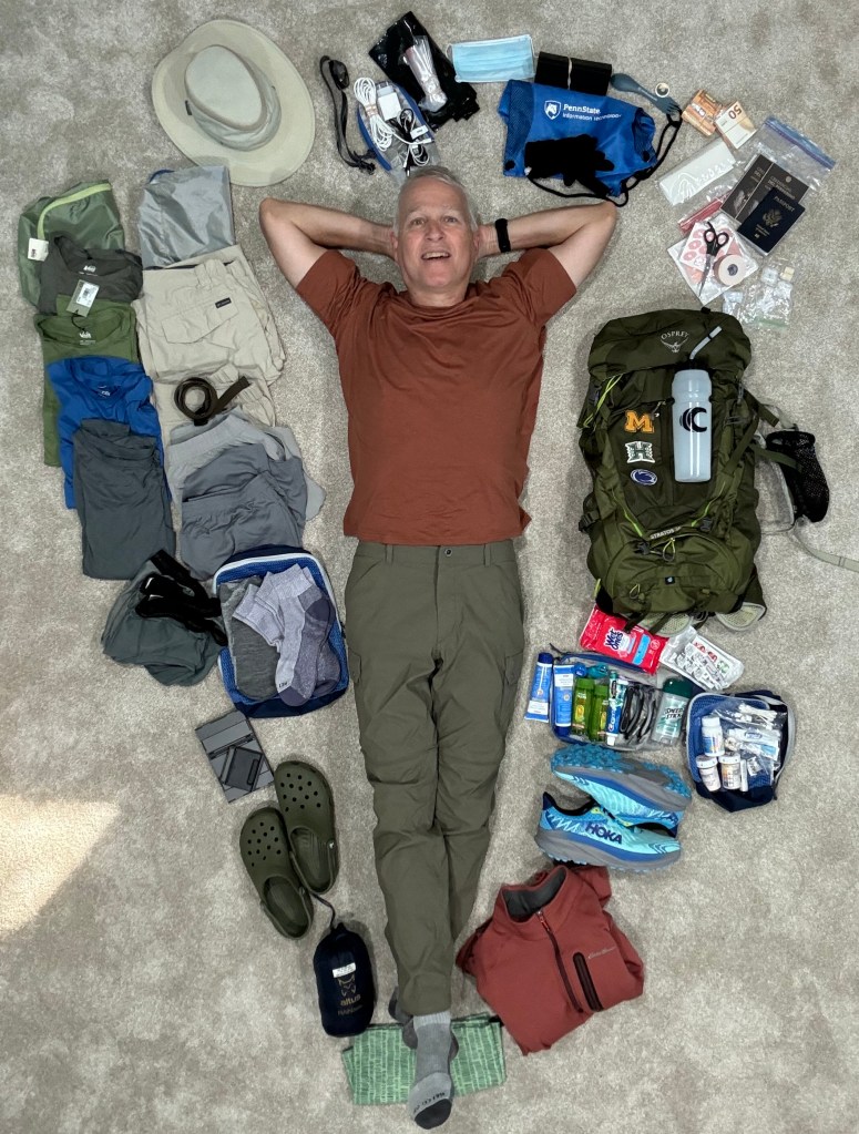 This year, my pack weighs in at about 18 pounds, which is about the same it weighed the past two years.