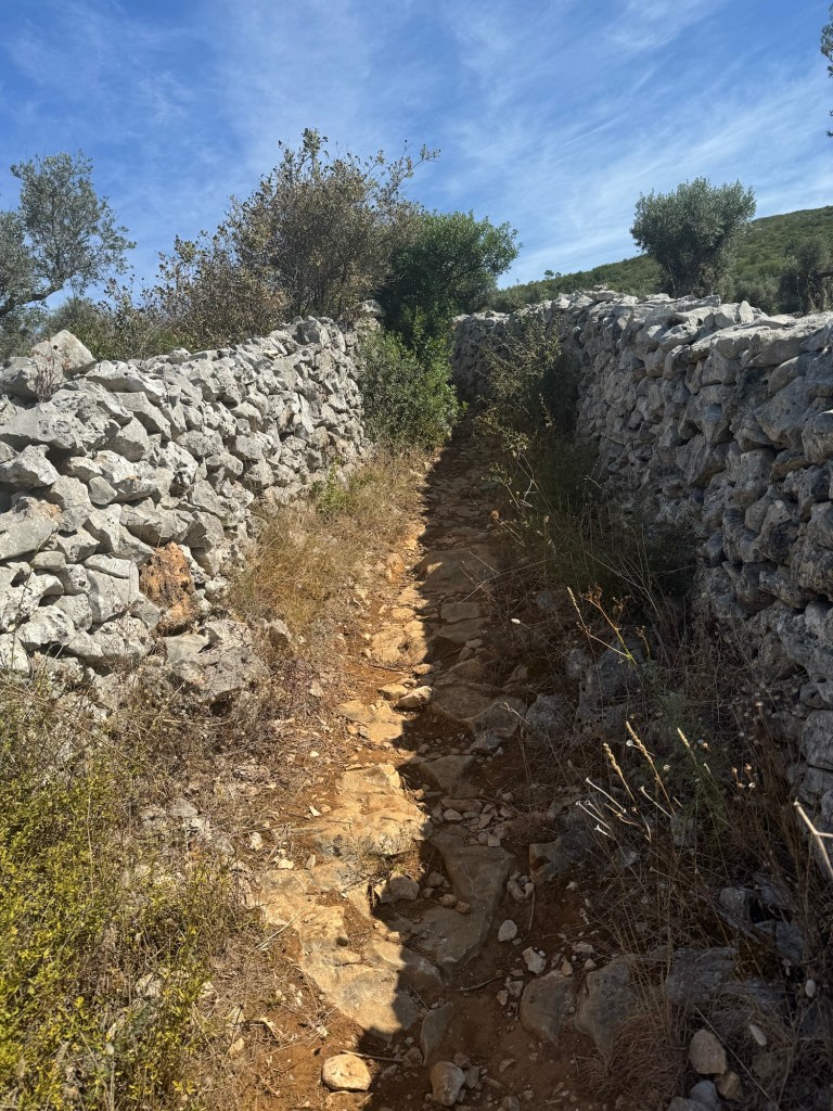 Another beautiful hike today with great views and several cute towns. It was a lot shorter than yesterday but hotter and steeper, so I was still tired when I finished. The last few miles were on a narrow rocky hiking trail. It was very steep and the footing was challenging, When I got to town, a local saw me taking a photo of the church, and unlocked the door so I could go inside. That was kind.