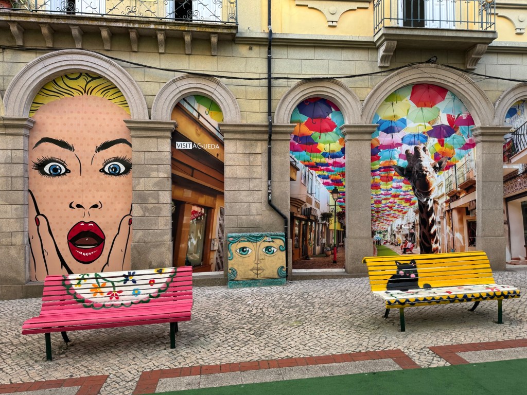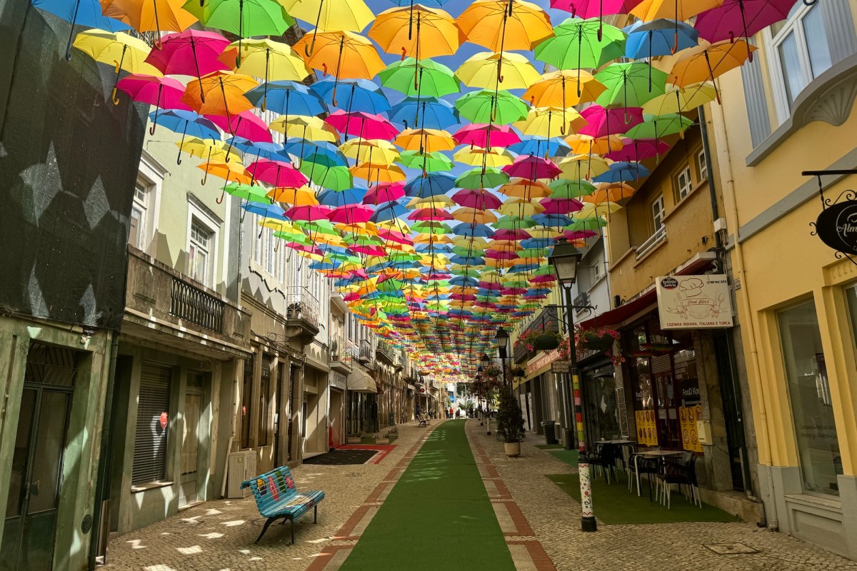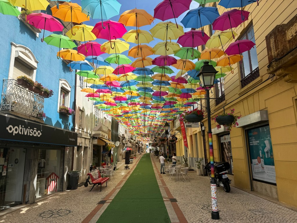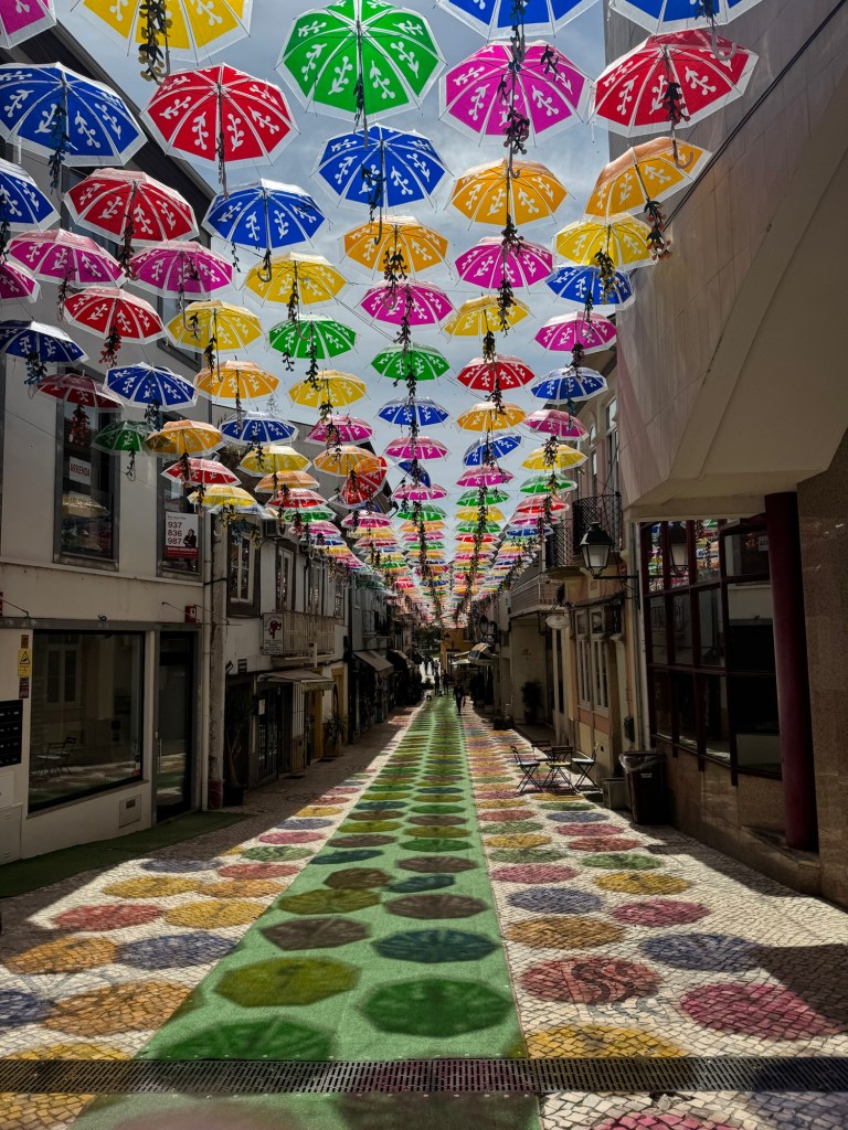 This town’s economy is mostly industrial along with some winemaking. They have been working on expanding tourism including adding decorations all over town to brighten things up. It definitely works. The walk down the narrow streets with umbrellas overhead is magical.