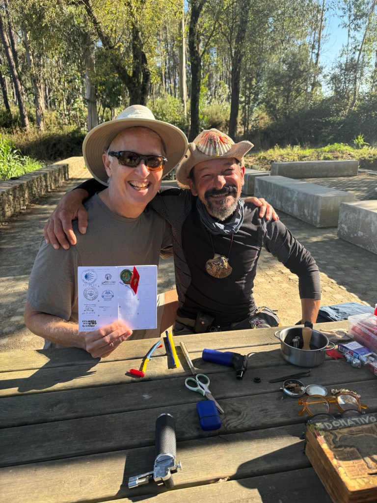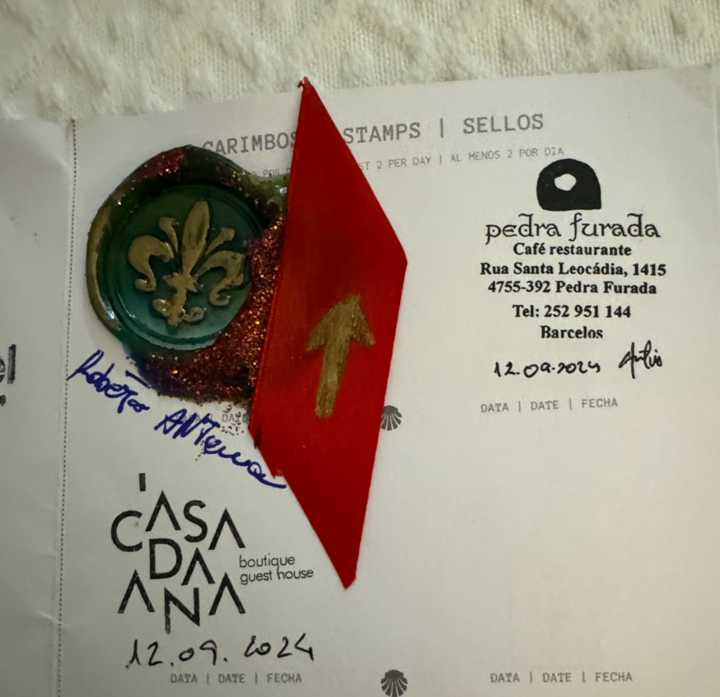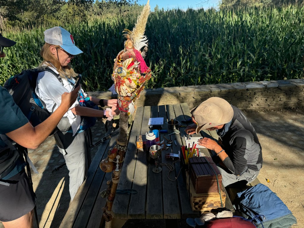 Today we bumped into a pilgrim who creates beautiful wax stamps for his fellow pilgrims. Any donations he receives he uses to fund his pilgrimage.
