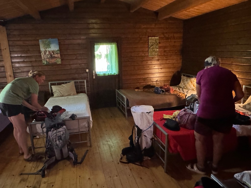 It has the feeling of summer camp. We are in a wood cabin that holds 10 people. It’s divided by a wall creating a room for 4 and 6. All 6 of us are together on one side. There are Canadians and Australians staying on the other side and in an add-on room.