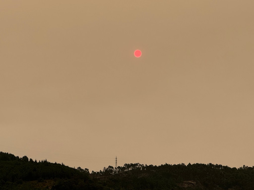 Odd weather today. The weather app said it was 100% sunny and warm, but the smoke from the fires made it overcast and cool all day. Even with the smoke, the air quality was pretty good. We couldn’t smell smoke and could breathe fine.