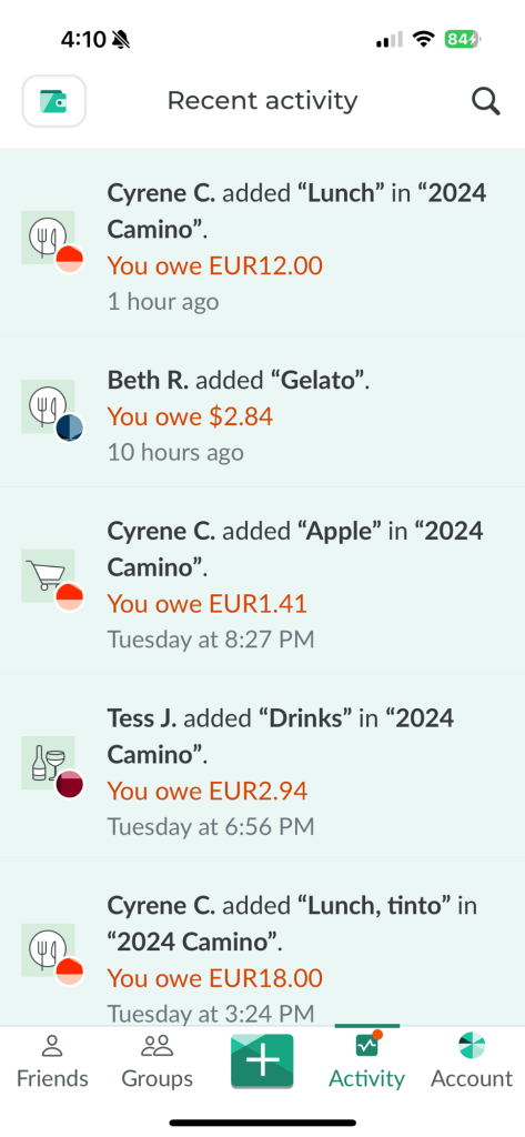 We’re using “Splitwise” to track expenses. It’s fantastic if you’re paying as a group for many expenses like we are on this trip.