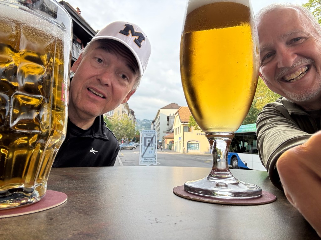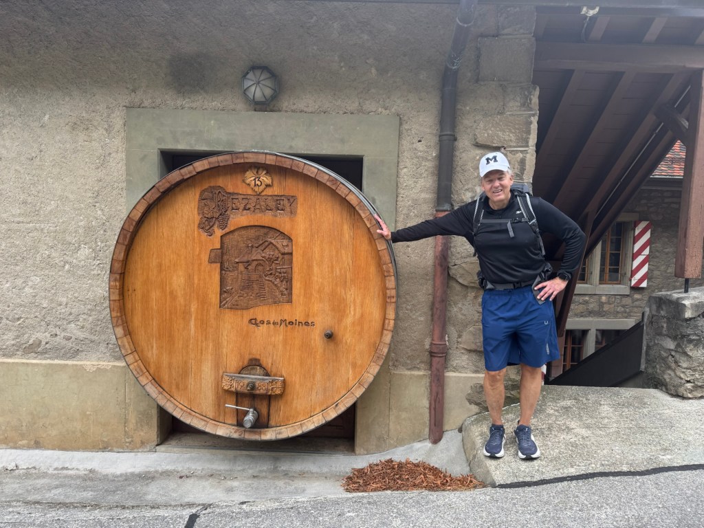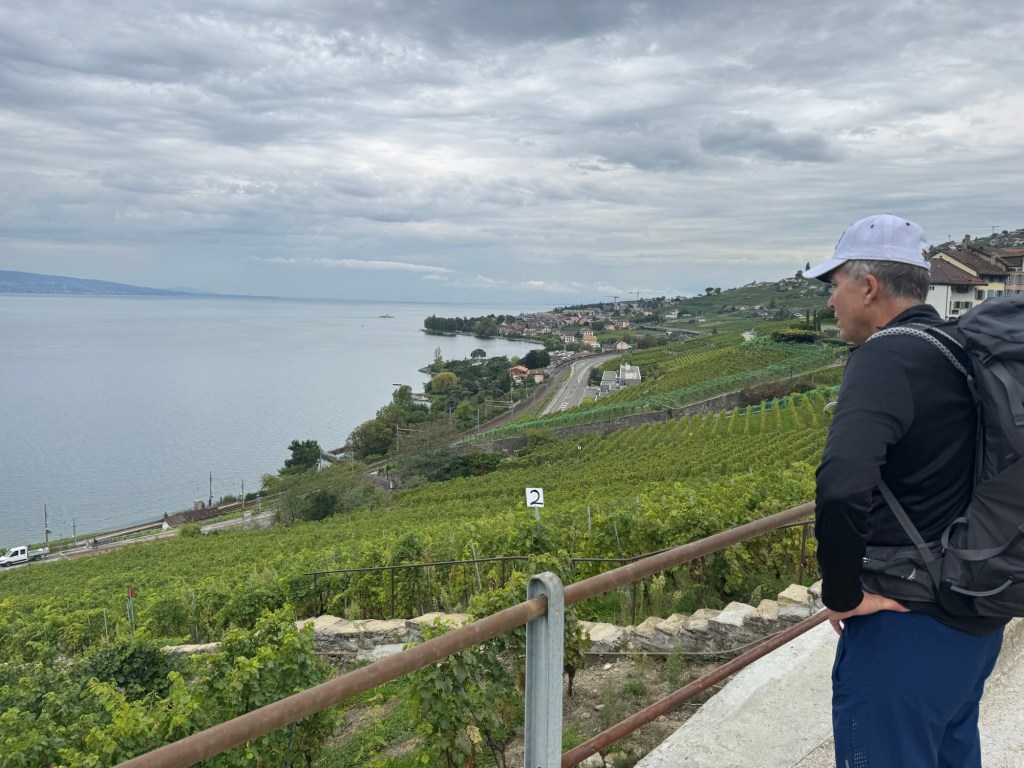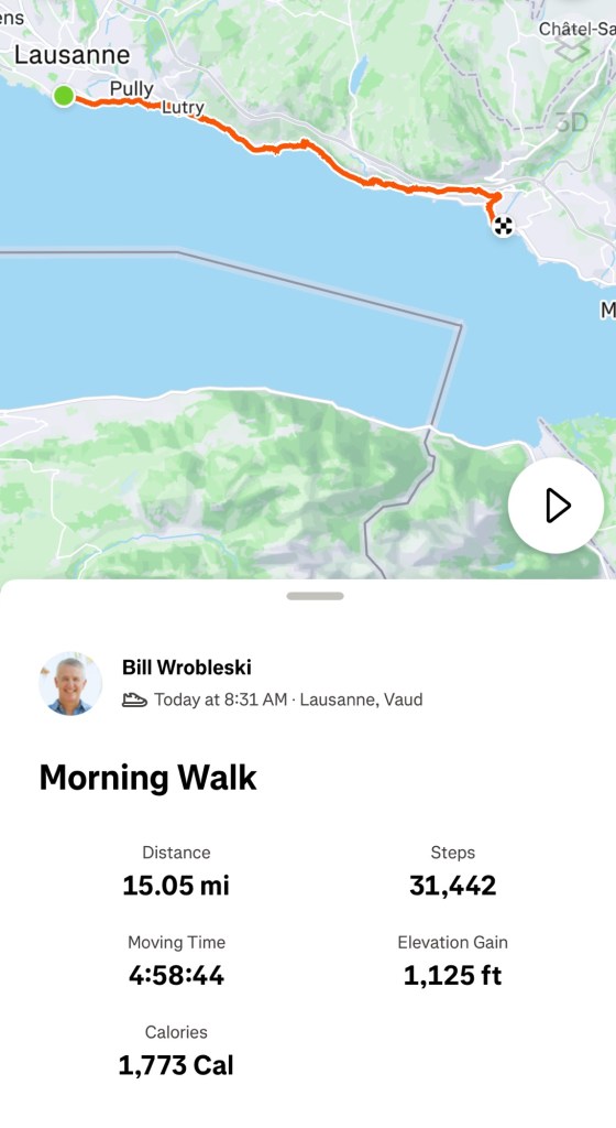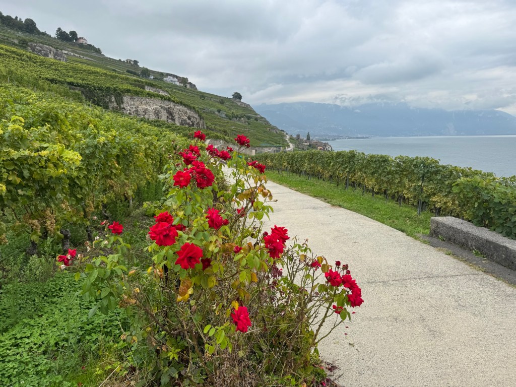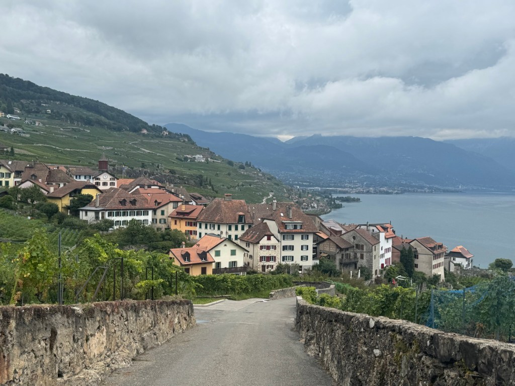 It was a beautiful route today. We started by walking along the lake, then we moved up into the vineyards. There were cute villages sprinkled in along the whole walk. At the end, the route went right past Nestle’s headquarters. No chocolate out front, unfortunately.