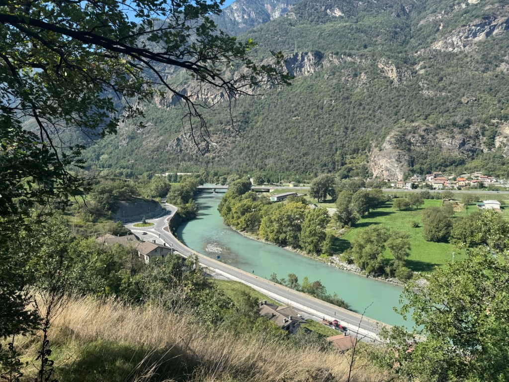 The Dora Baltea River. It originates from the glaciers of Monte Blanc, and eventually joins the Po River.