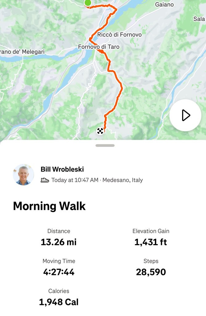 Usually, I get started walking about 9AM, and arrive in the finishing town in the early afternoon. This gives me time to clean up, rest, explore and eat.