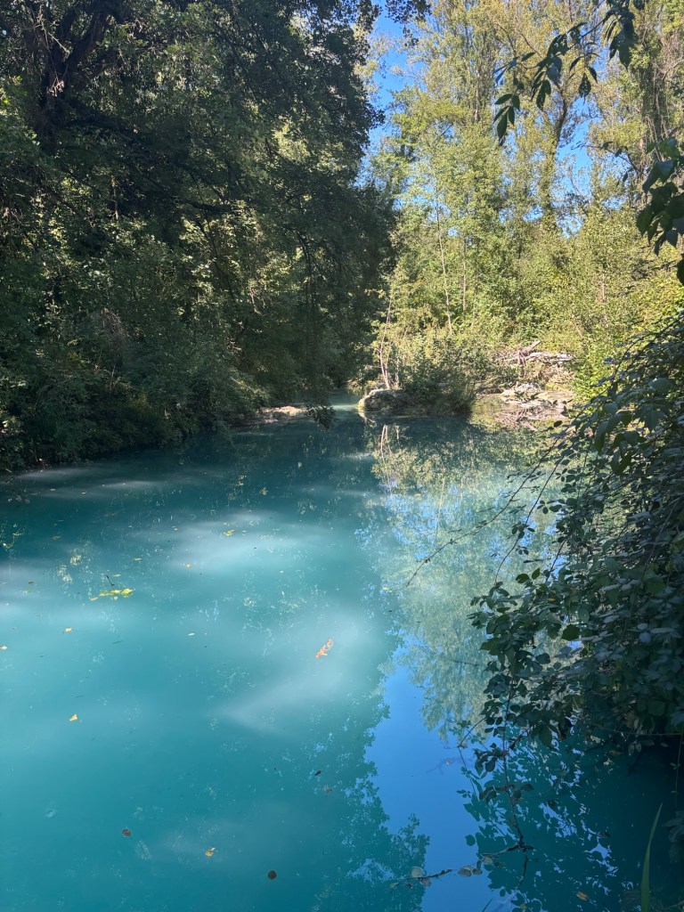The beautiful blue water of the Elsa river. The blue is from calcium carbonate that erodes off the limestone riverbed. We walked along this river for about 45 minutes. It was lovely.
