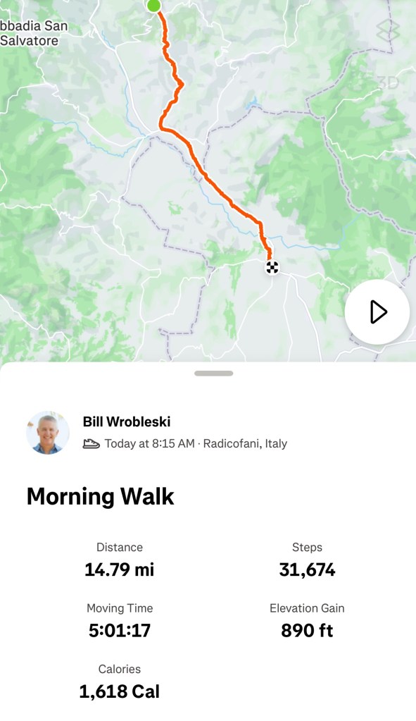 Today, I left Tuscany and entered Lazio. Tuscany was amazing. Some of the best hiking that I’ve ever done. So many beautiful towns.